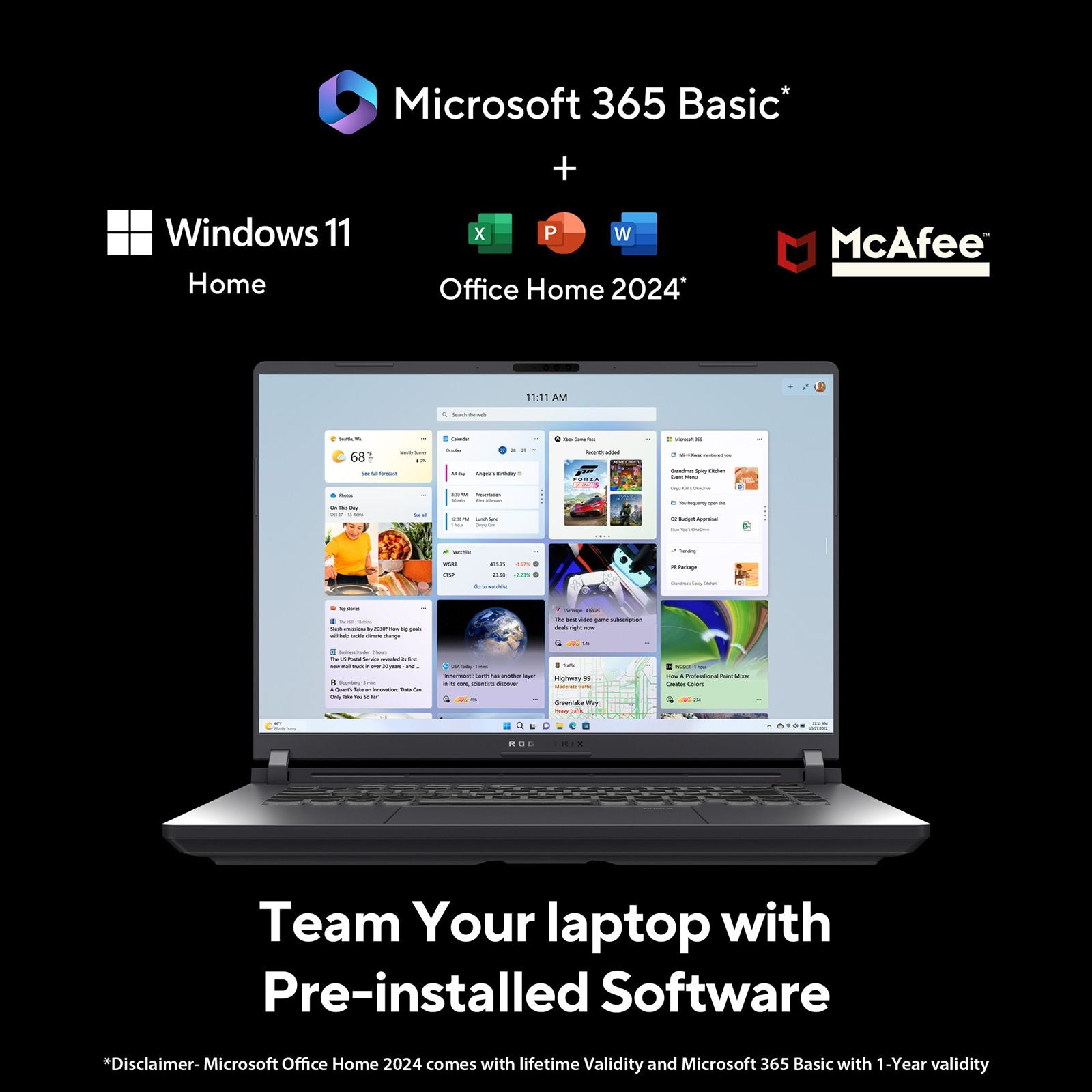 - Included Software: MS Office Home 2024, Microsoft 365 Basic, McAfee 1 Year