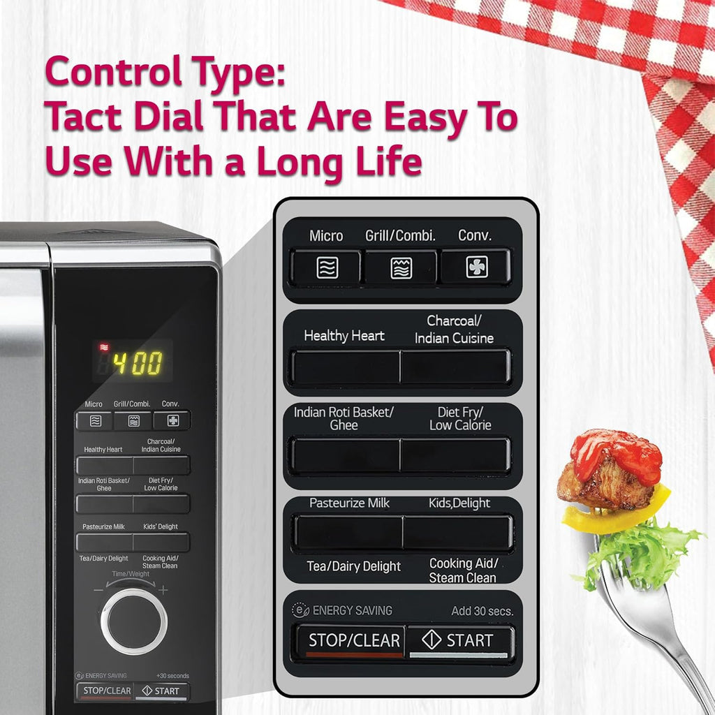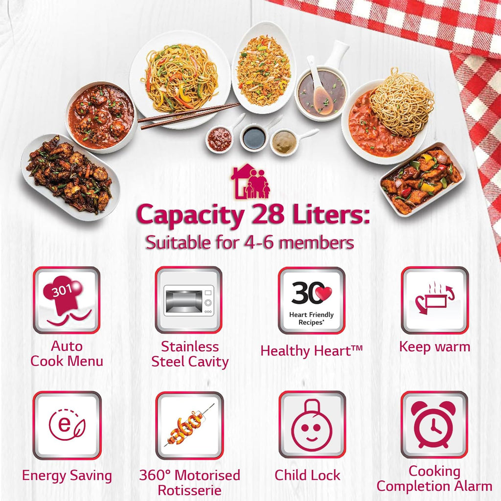 LG MJ2887BFUM 28 L Charcoal Convection Microwave Oven ( Black, with 360° Motorised Rotisserie & Charcoal Lighting Heater with 10 years warranty)